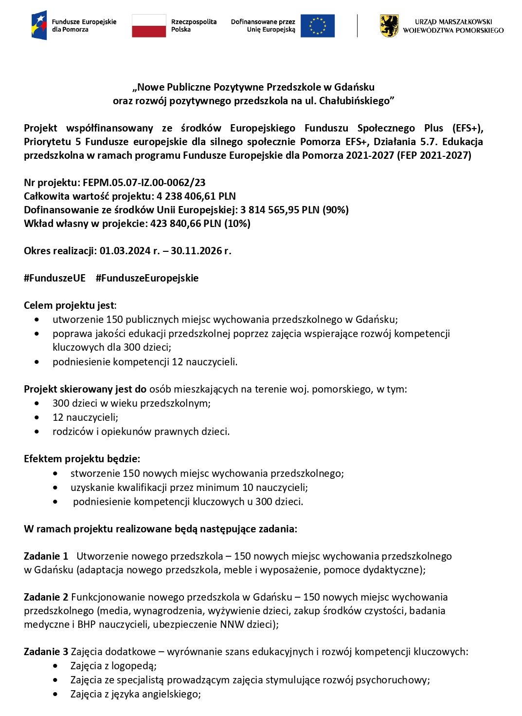 Uniwersytet Gdański bierze udział w projekcie „Nowe Publiczne Pozytywne Przedszkole w Gdańsku oraz rozwój pozytywnego przedszkola na ul. Chałubińskiego”, realizowanym przez Fundację Pozytywne Inicjatywy.